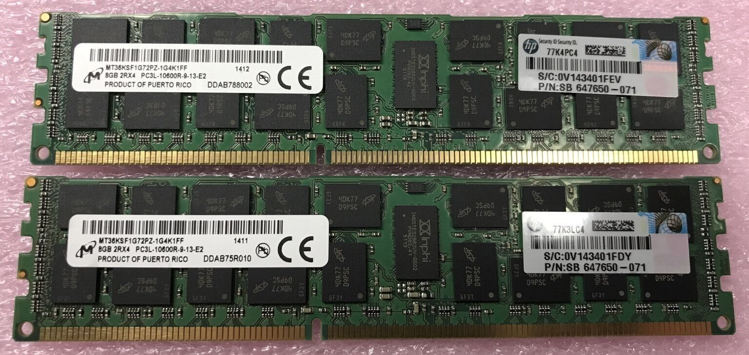 2x 8GB Micron MT36KSF1G72PZ-1G4K1FF 2Rx4 PC3L-10600R-9-13-E2 RAM