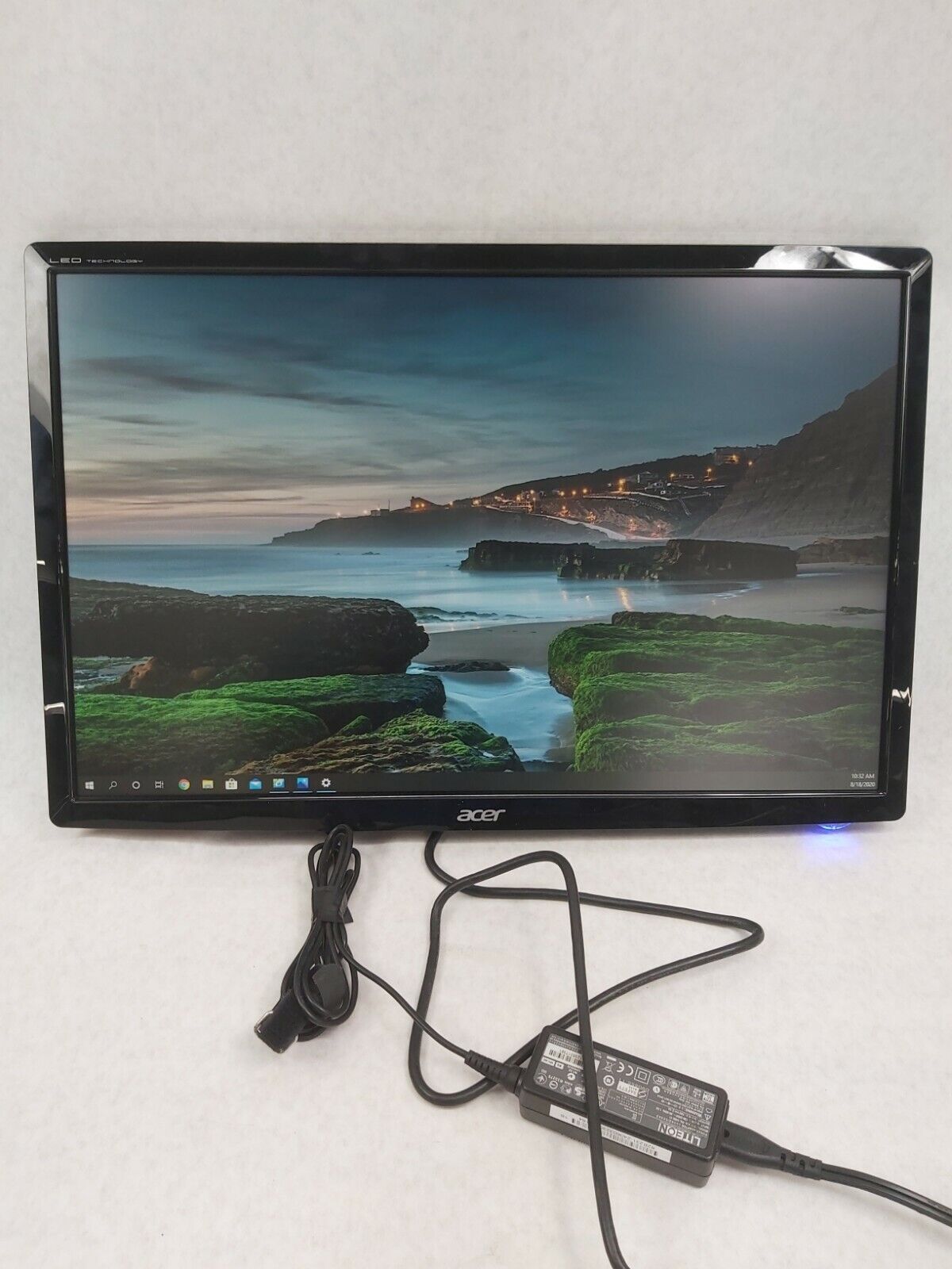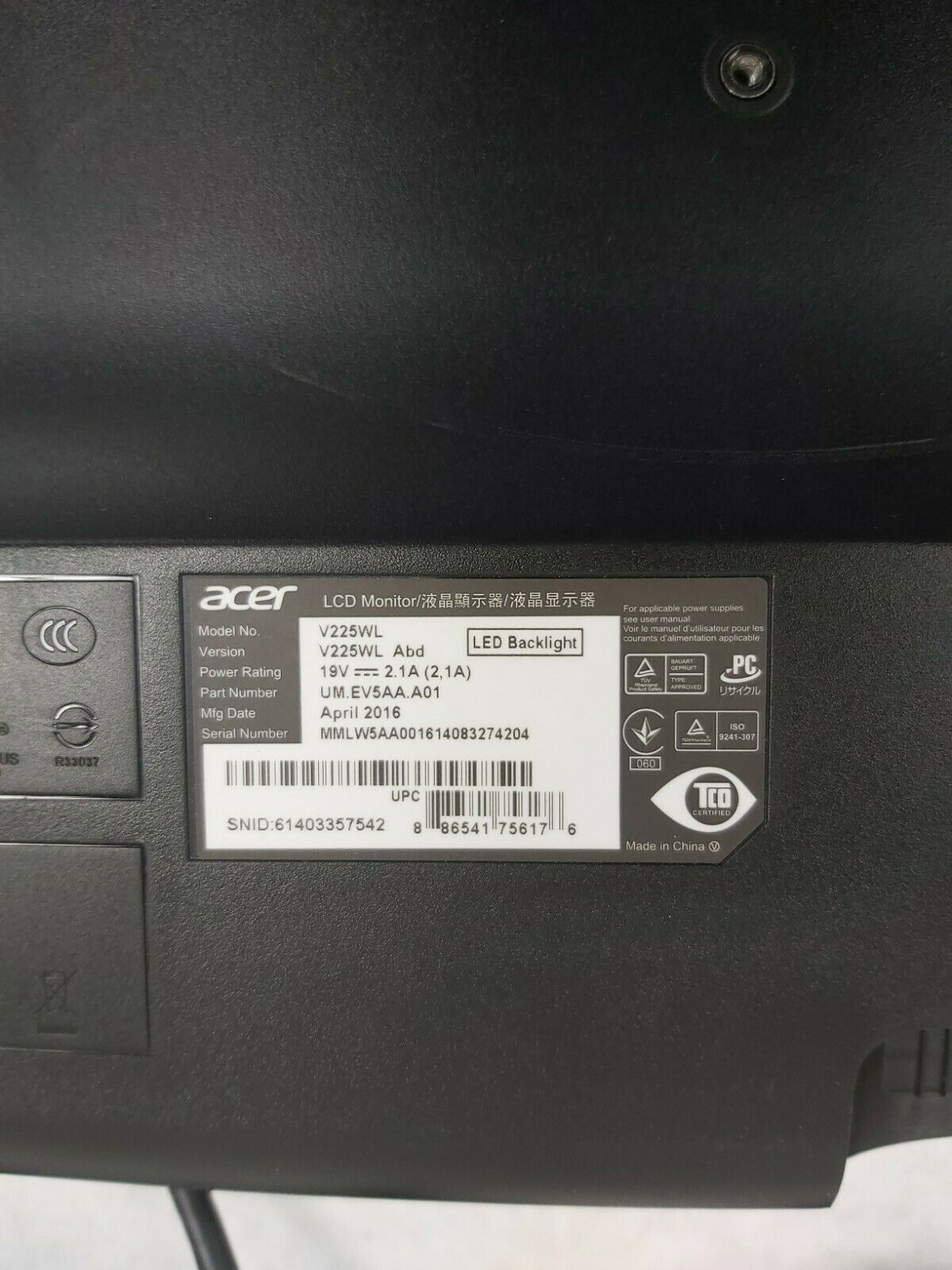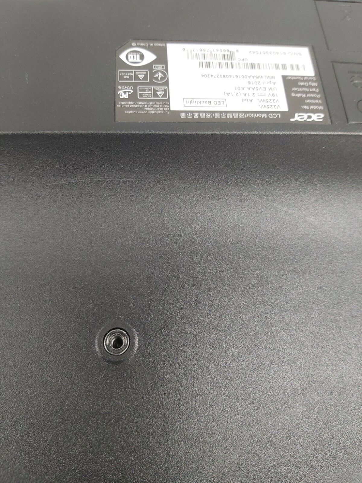 Grade B. No stand, no power supply, and no VGA. Screen is pristine. Bezel has some scratches. There are some large scratches and a gouge on the back of the monitor. See pictures for details.