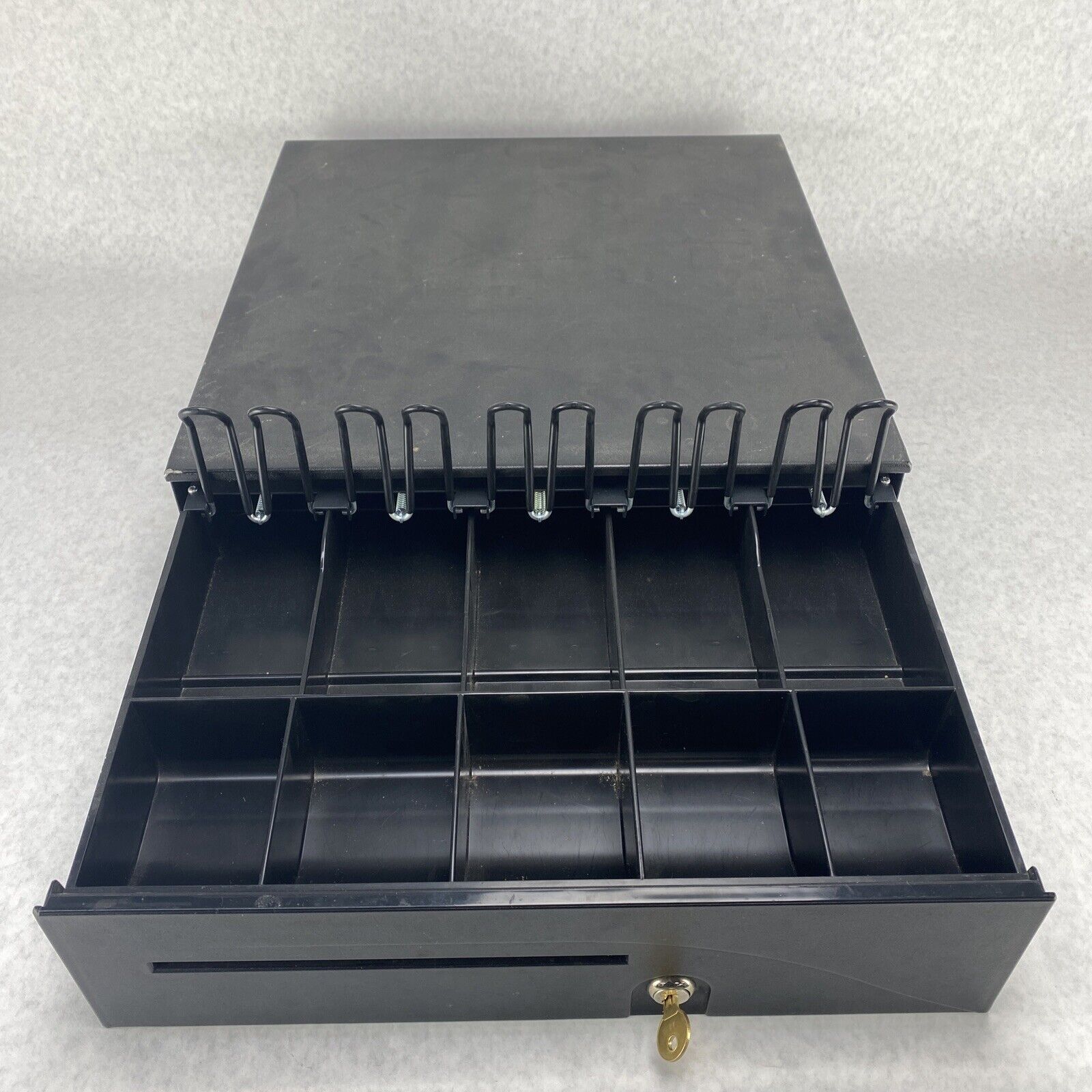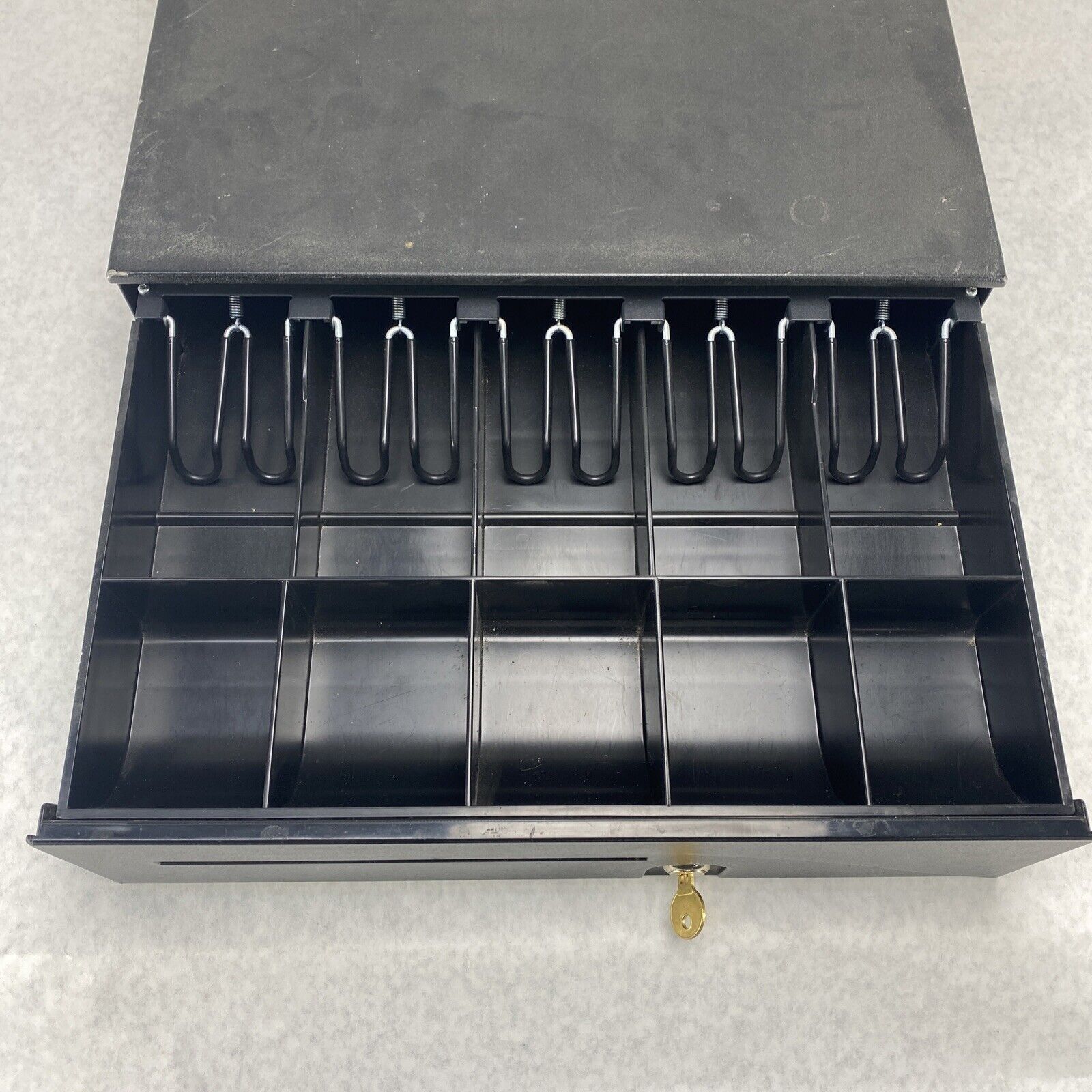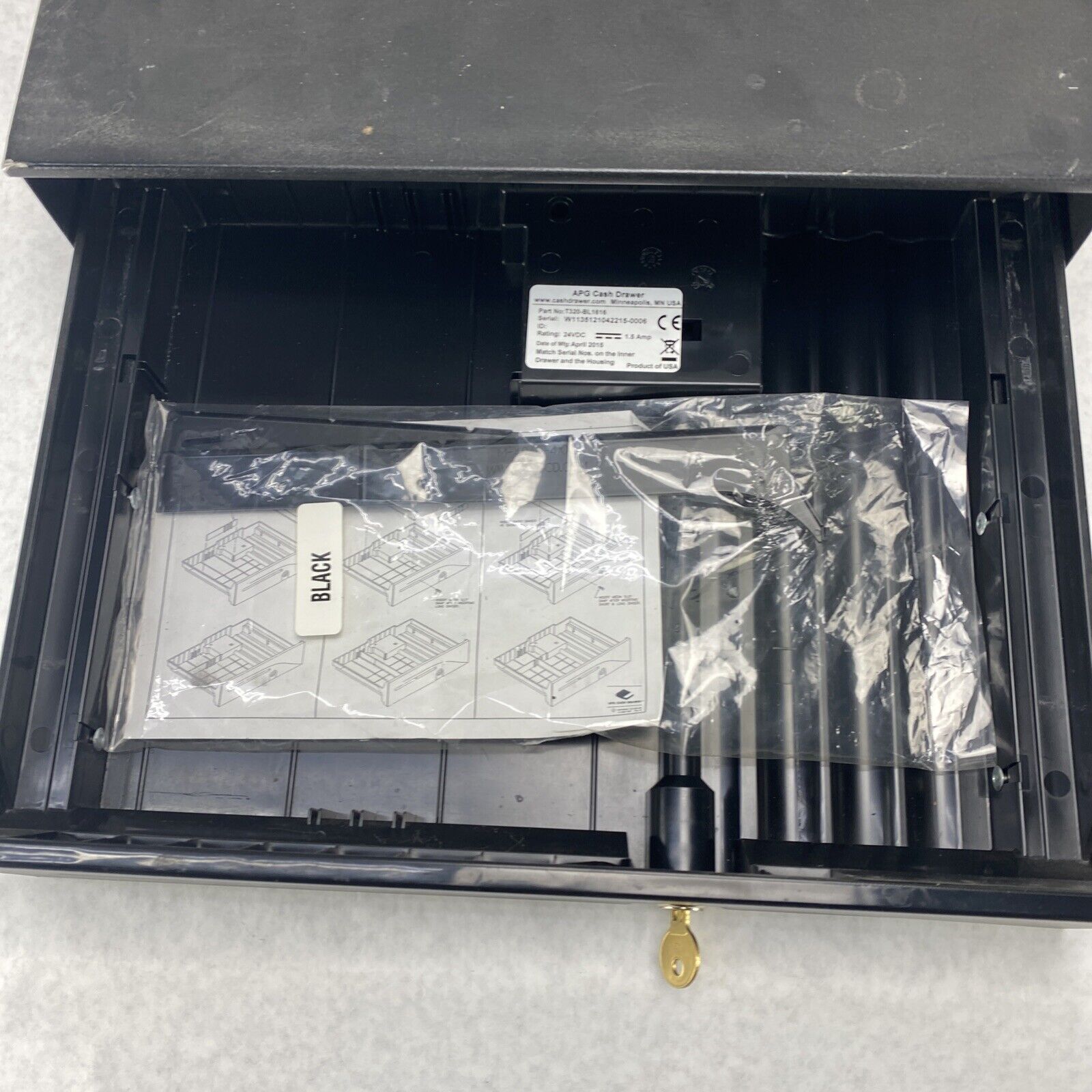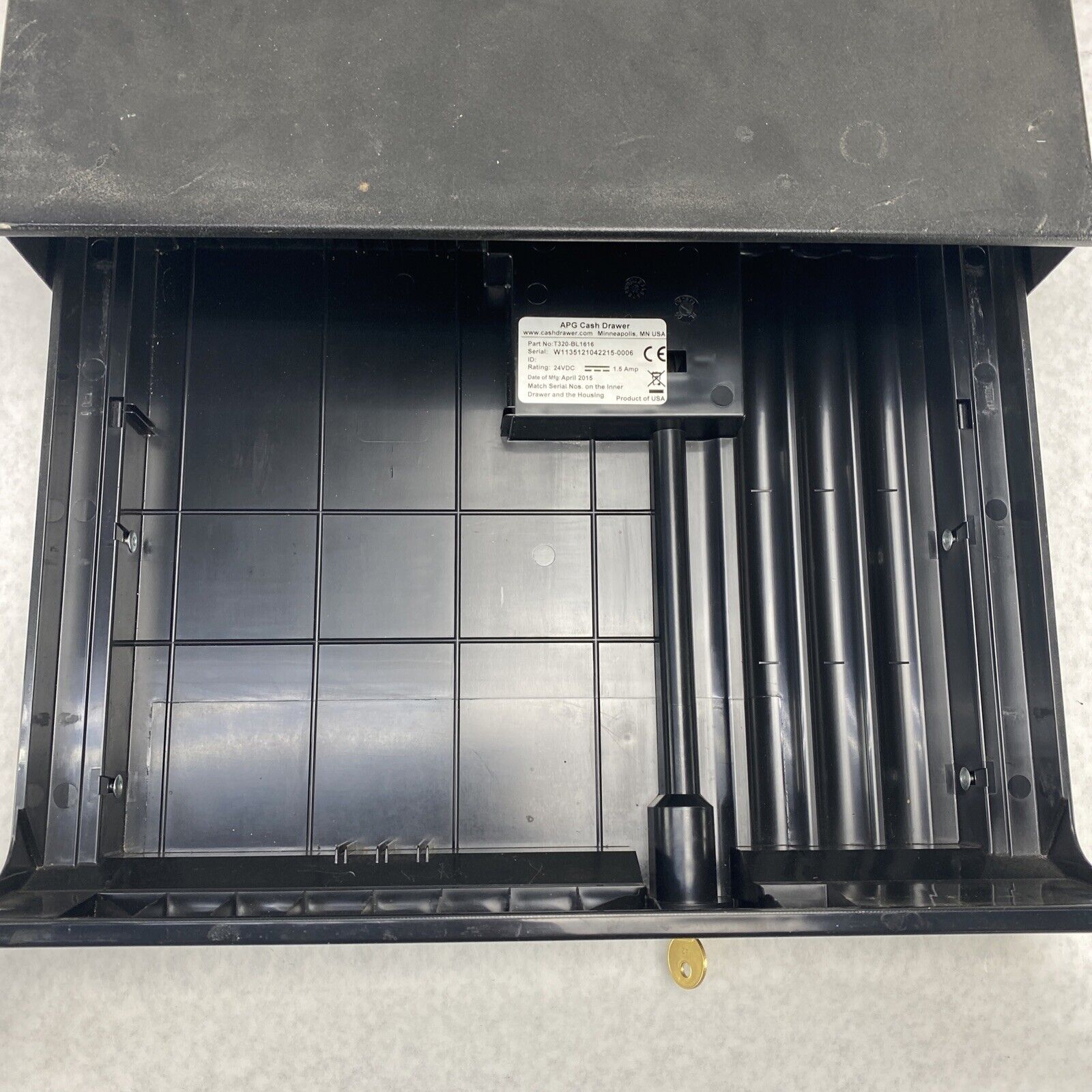 Tested and working. Drawer does not pop out when unlocked; requires some pulling. Grade B exterior: some blemishes such as scratches, scuffs, discoloration, or other minor signs of use/age.