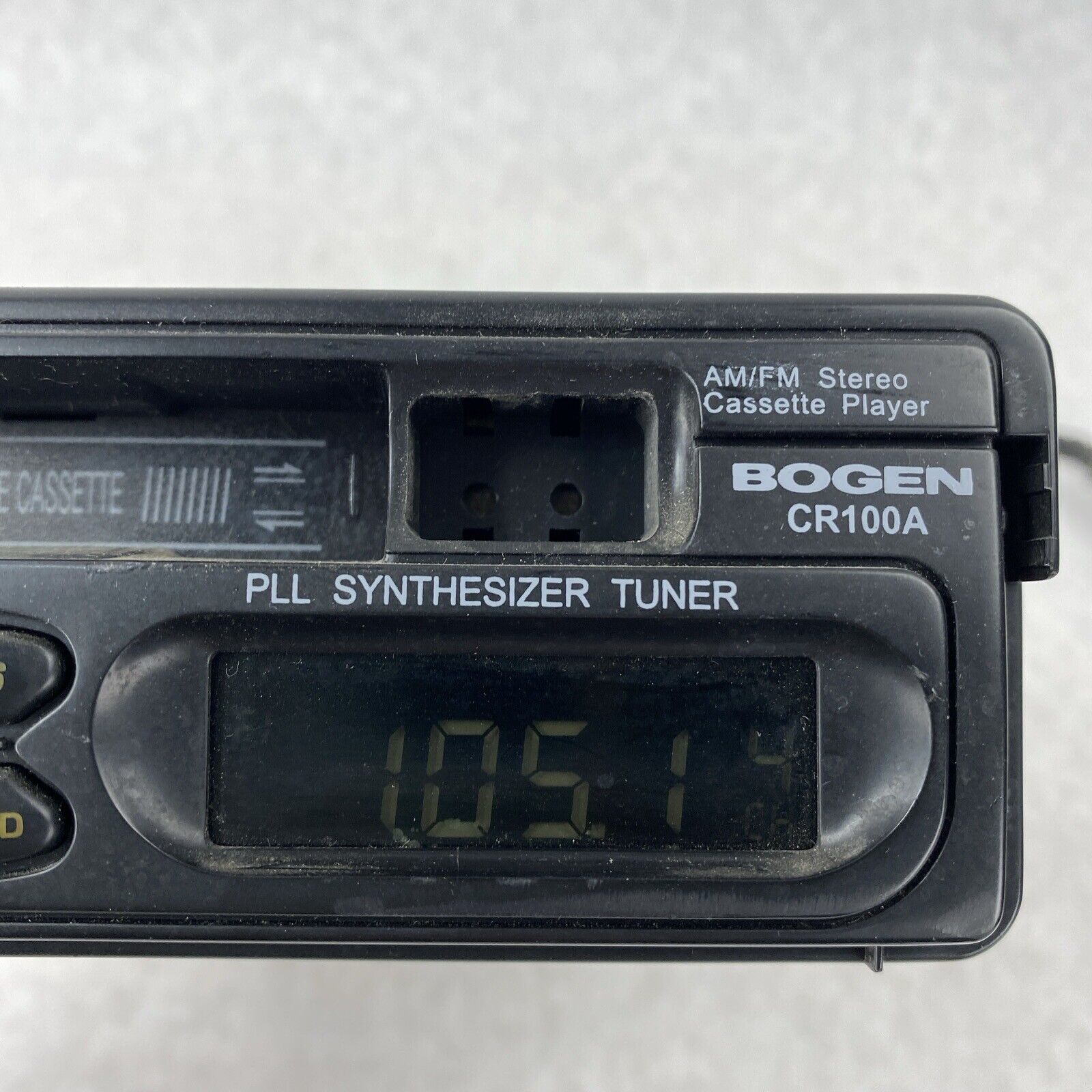 Radio tuner worked but cassette player did not. Cassette did not play and is missing Rewind and Fast Forward buttons. Grade B exterior: some blemishes such as scratches, scuffs, discoloration, detritus, or other minor signs of use/age. SOLD AS IS for PARTS or REPAIR with NO RETURNS.