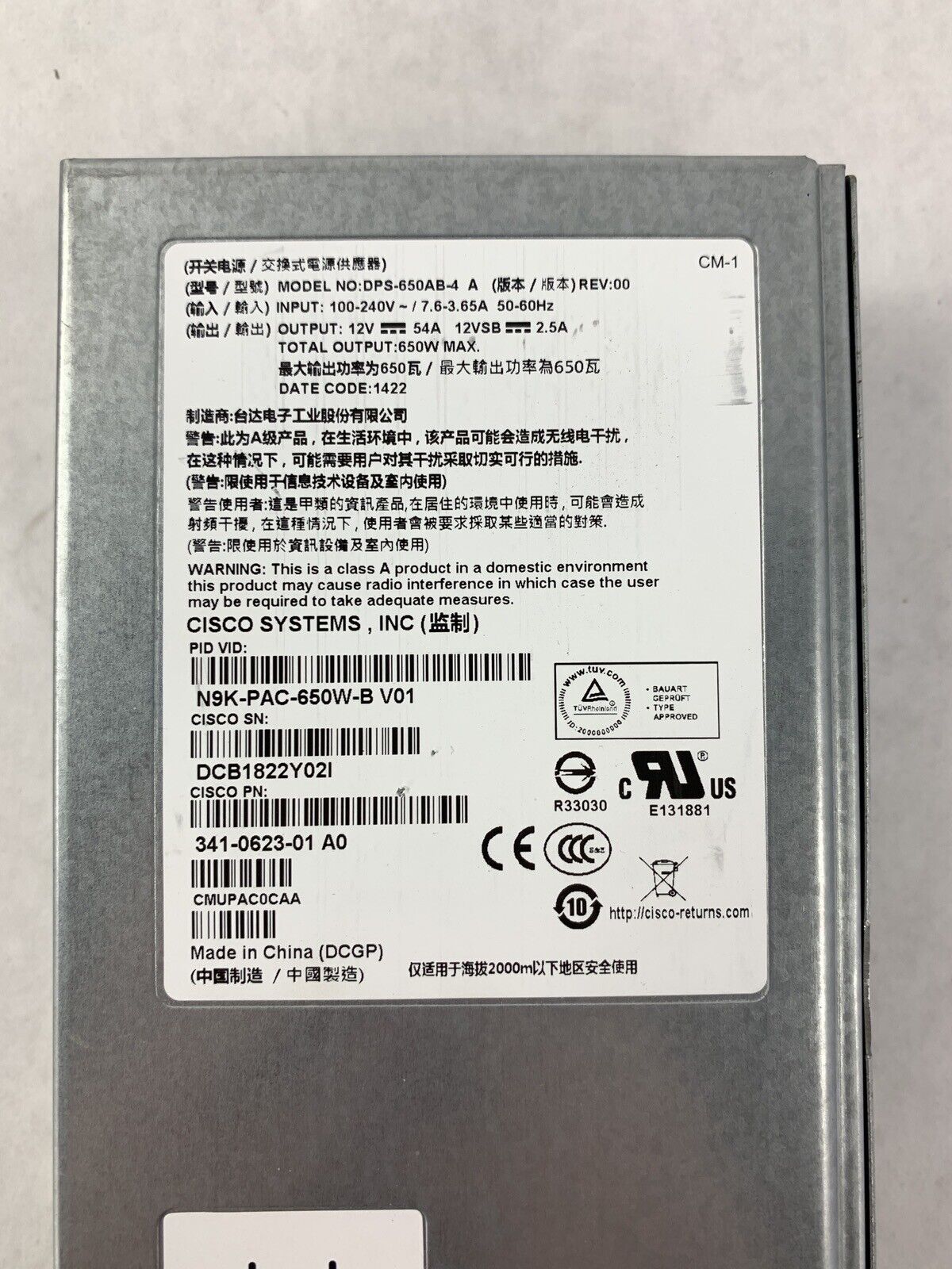 CISCO 341-0623-01 U DPS-650AB-4 UCS 6332-16UP 650W Power Supply