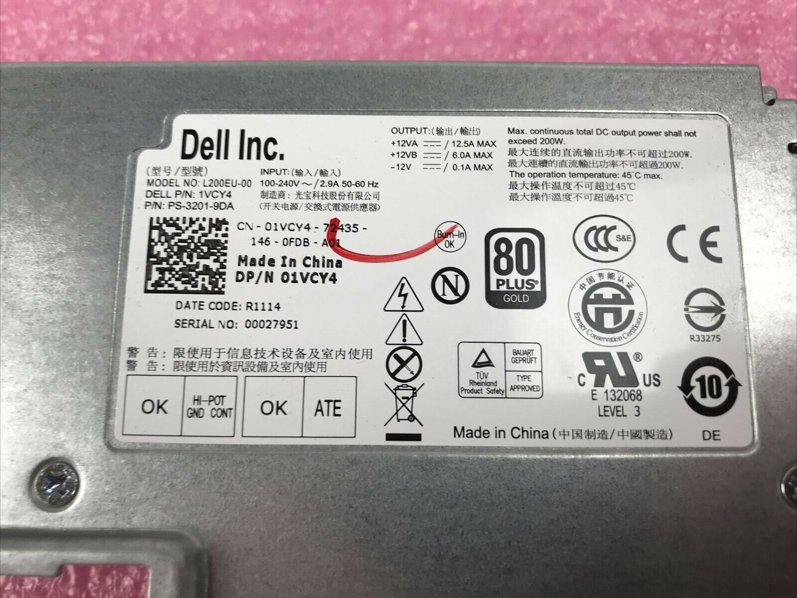 Dell Optiplex 7010 9010 9020 USFF Computer Power Supply 1VCY4 L200EU-00 200W