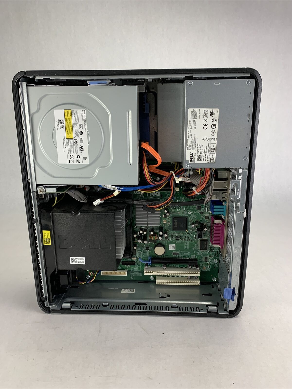 Power cord is included. Tested and working. CPU and RAM passed a stress test. Hard drive removed. No operating system or software included. The case may be missing rubber feet and have scattered scuffs and scratches from previous use. Buyer will need to install a hard drive and an operating system. There is no COA on the case. There is no caddy or screws to mount a hard drive. See photos for additional details.