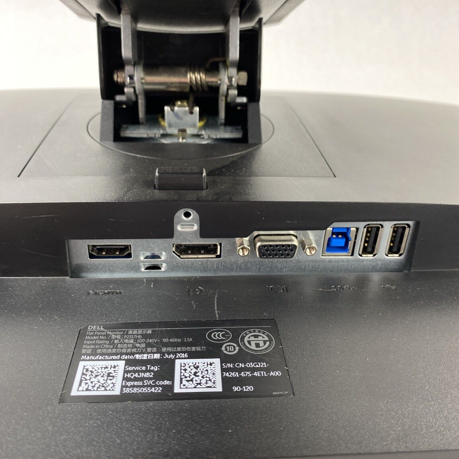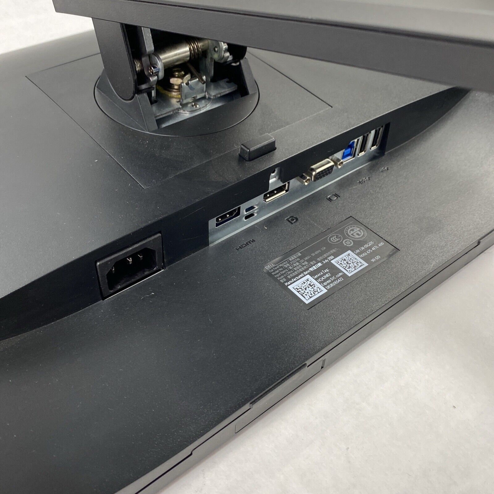 Tested and Working. White marks/scratches on bottom of display. Harder to see when display is turned on. The display port was used for testing. HDMI and VGA are untested. Includes Stand and does include a Power Cord.