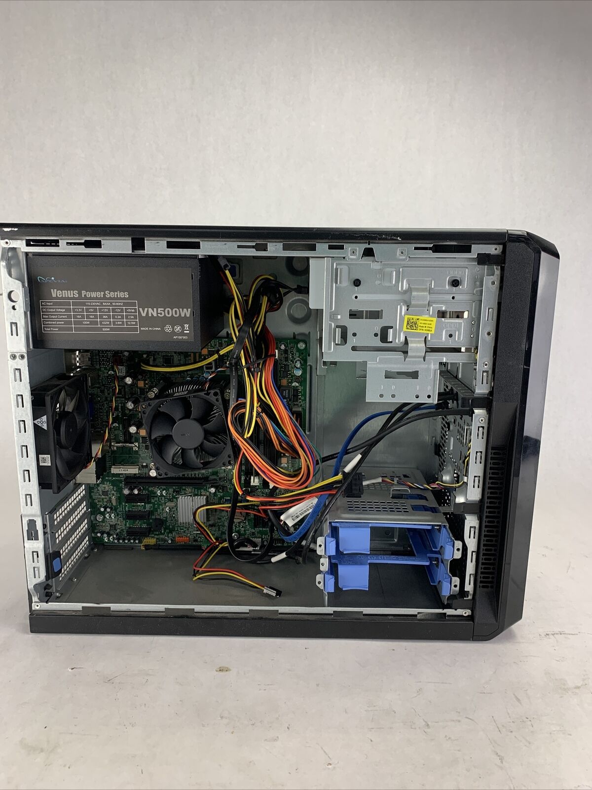 Power cord is included. Tested and working. CPU and RAM passed a stress test. Hard drive removed. No operating system or software included. The case may be missing rubber feet and have scattered scuffs and scratches from previous use. Buyer will need to install a hard drive and an operating system. There is no COA on the case. There is no caddy or screws to mount a hard drive. See photos for additional details.