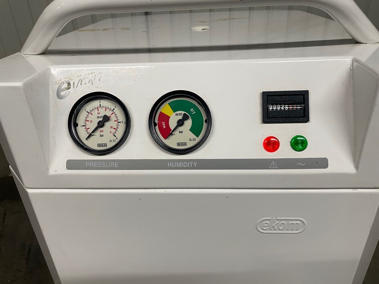 This unit is 230V. The unit powers, compressor kicks on, and builds pressure. Selling AS-IS for parts or repair because no further testing was done. Hour meter shows low hours.