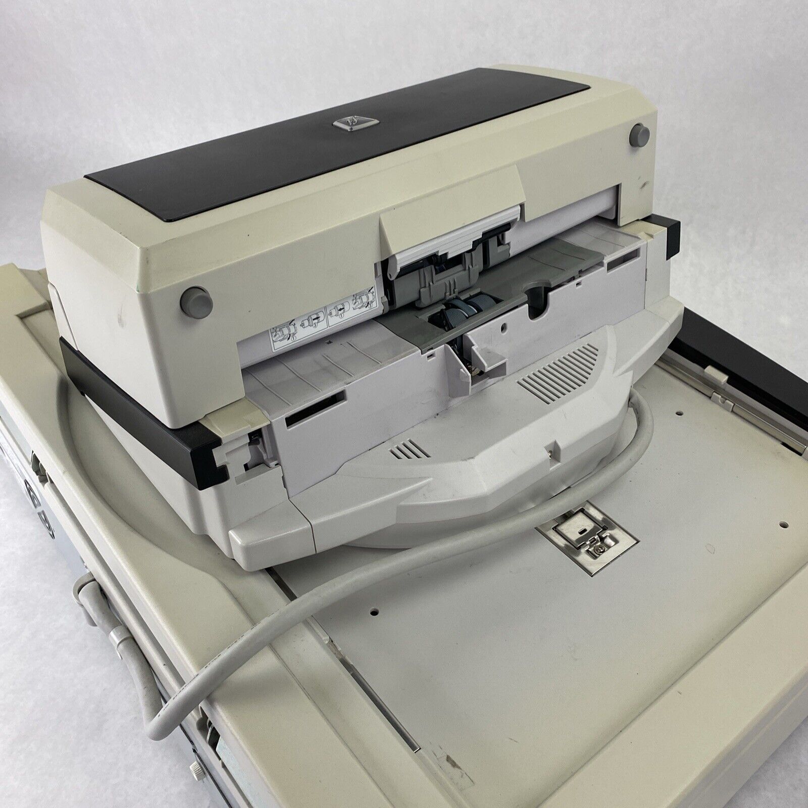 Missing upper and lower trays. Top scanner has lines in images. For these reasons this unit is listed as for parts or repair, sold as is, with no returns. Unit has been tested and can confirm printouts. Unit was reset to factory defaults. Tested using the USB port. Unit has some scuffs, scratches, and other blemishes from previous use. Please see photos for further condition details as well as additional product information. Does not include any cables or accessories.