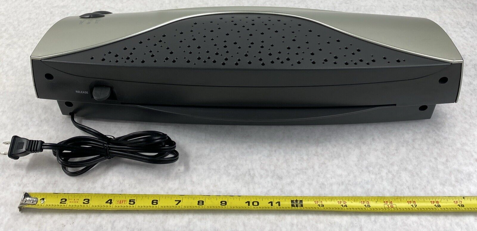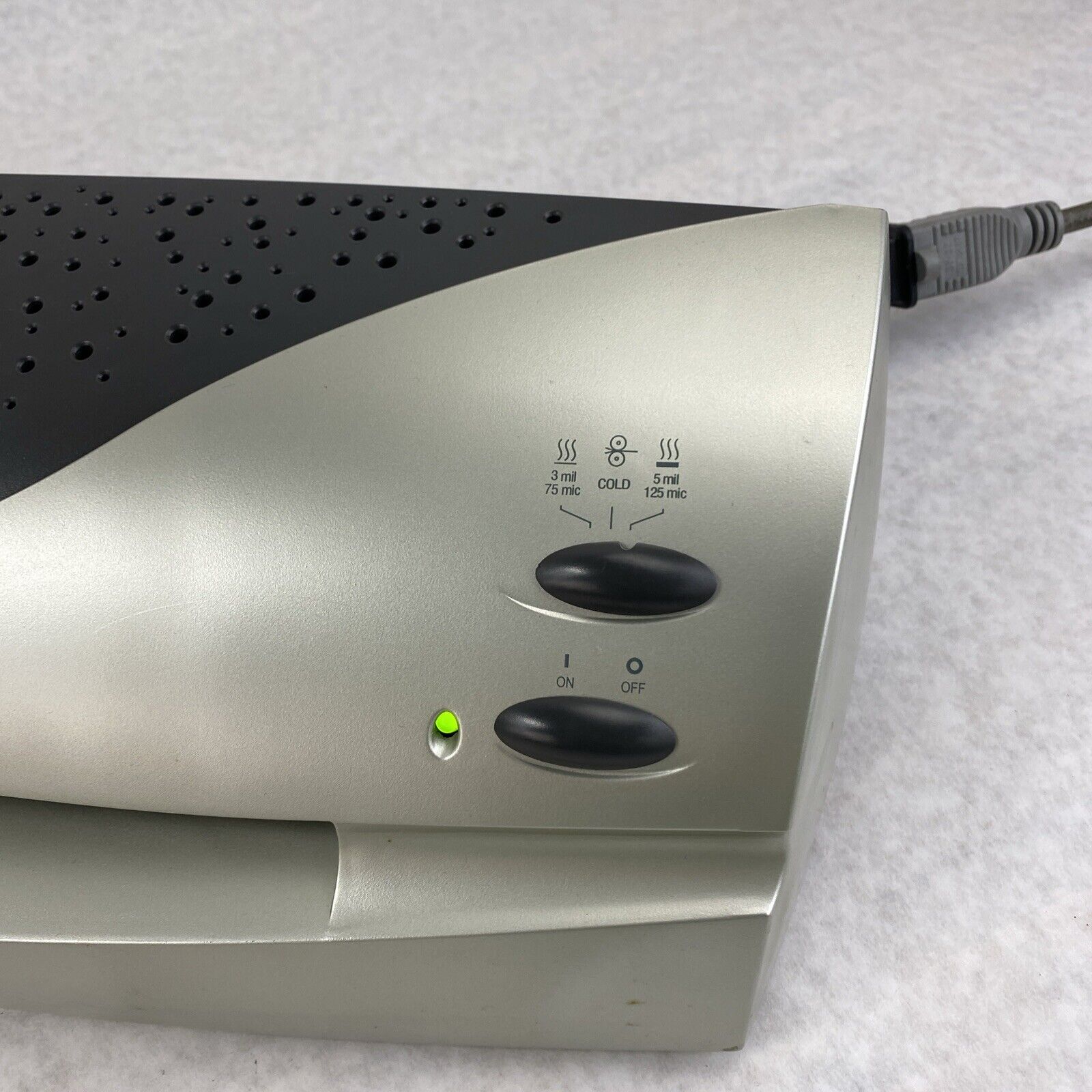 Powered on, heated up (temperature unmeasured), but otherwise untested. 30 day DOA warranty. Includes only what is pictured. Laminator only: no Starter Kit, no laminates, no sheets, no accessories. Grade B exterior: some blemishes such as scratches, scuffs, discoloration, detritus, or other minor signs of use/age.