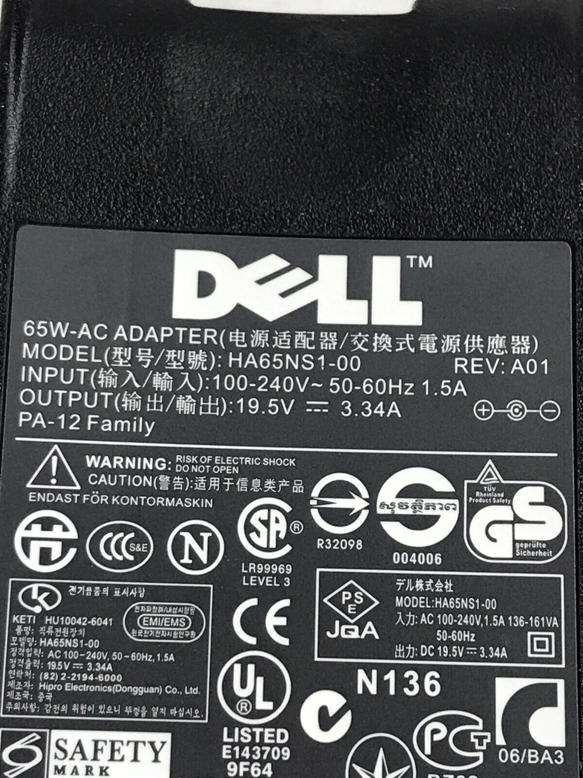 Genuine OEM Dell HA65SN1-00 Laptop Charger AC Adapter Power Supply PA-12 65W