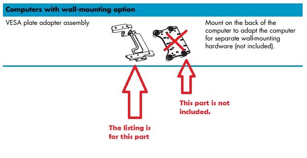 New. Only part shown in pictures is included from the kit. This is the part that attaches to the back of the all-in-one, it is not the part that attaches to the VESA mount. No screws included.