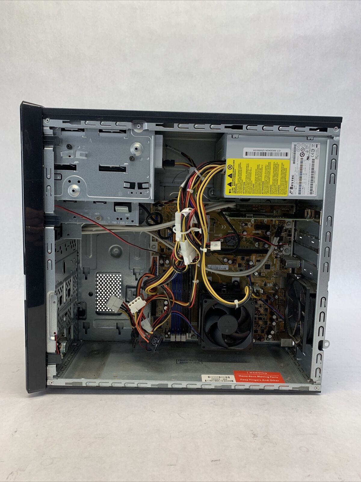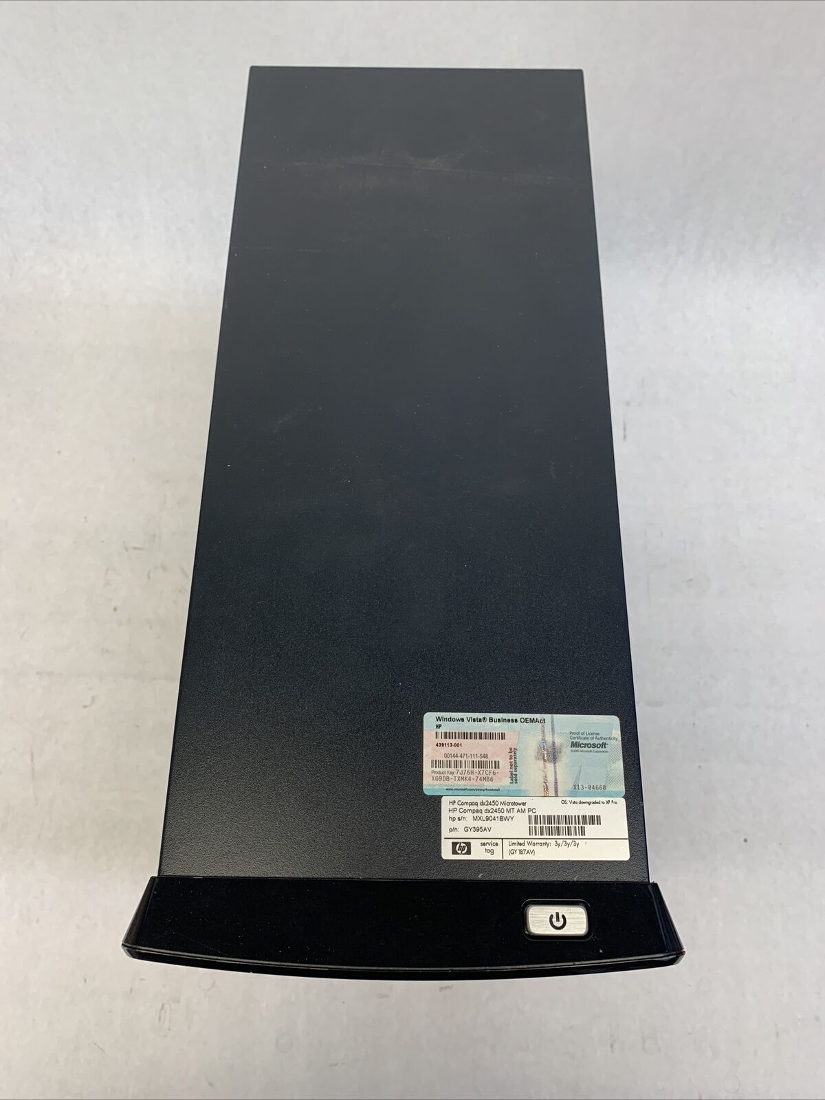 Power cord is included. Tested and working. CPU and RAM passed a stress test. Hard drive removed. No operating system or software included. The case may be missing rubber feet and have scattered scuffs and scratches from previous use. Buyer will need to install a hard drive and an operating system. There is a Windows Vista COA on the case. There is no caddy or screws to mount a hard drive. See photos for additional details.