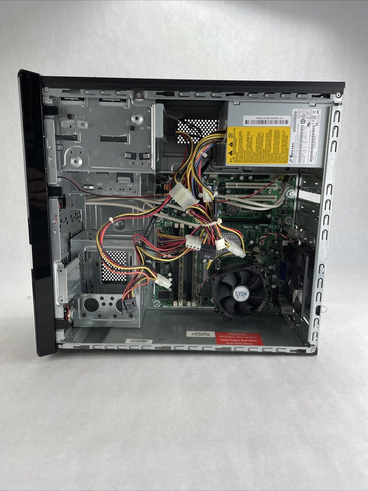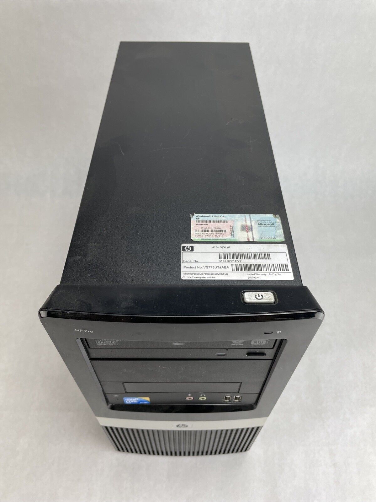 A power cord is included. CPU and RAM passed a stress test. Hard drive removed. The case may be missing rubber feet and have cosmetic damage from previous use. Buyer will need to install a hard drive and an operating system. There is a Windows 7 Pro COA on the case. There is no caddy or screws to mount a hard drive. See photos for additional details.