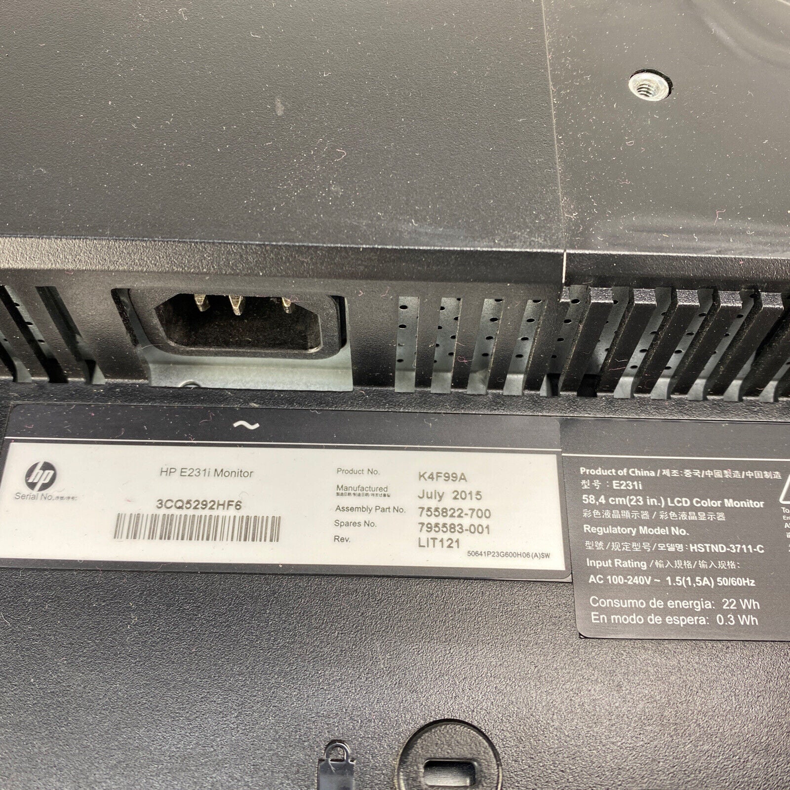 Tested and working. Backlight hours may vary significantly. No accessories; no stand, no mounts, no mounting hardware, no video input cables. Comes with a standard AC power cord. Grade B (further details in Description). Some signs of wear.