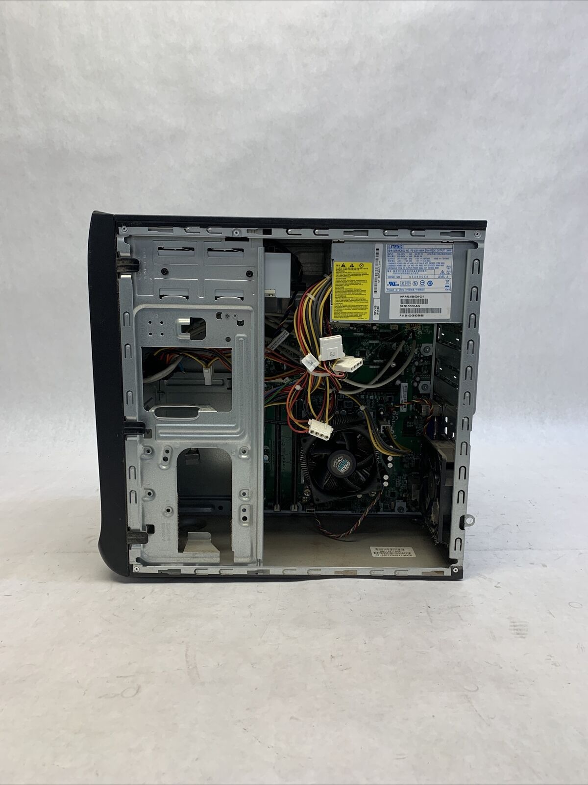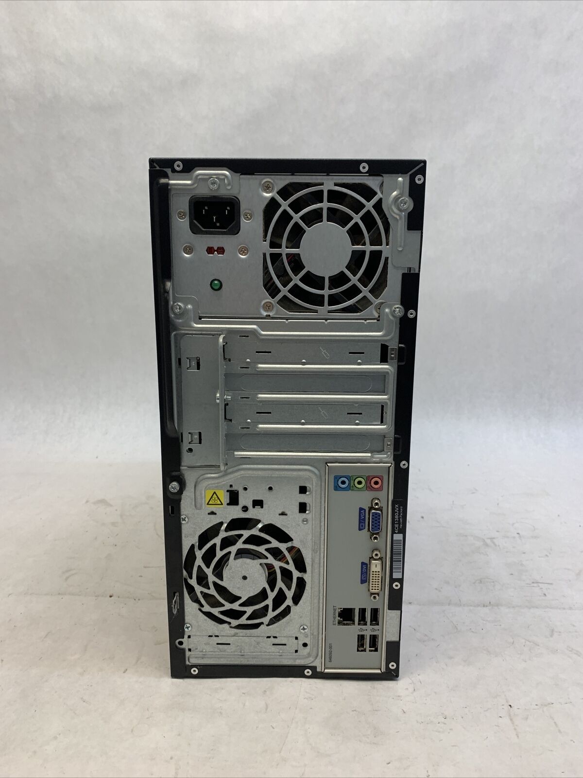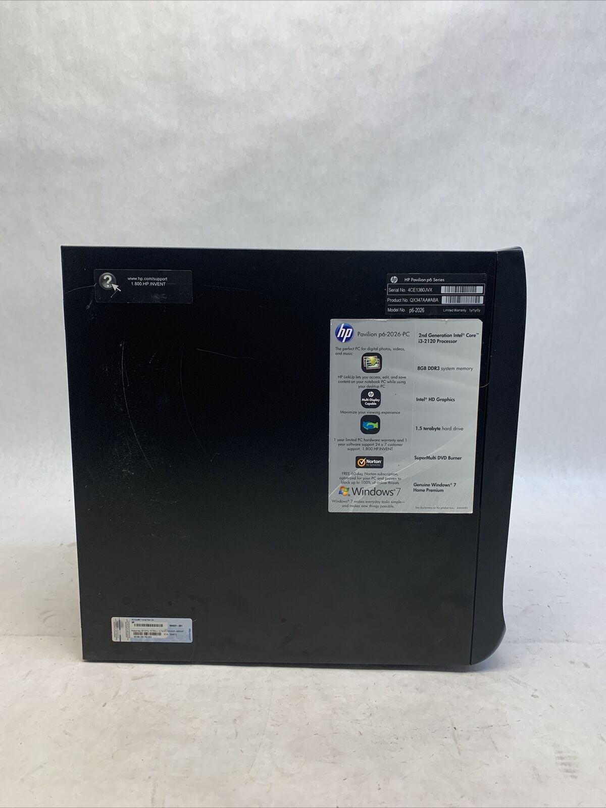 Power cord is included. Tested and working. CPU and RAM passed a stress test. Hard drive removed. No operating system or software included. The case may be missing rubber feet and have scattered scuffs and scratches from previous use. Buyer will need to install a hard drive and an operating system. There is no COA on the case. There is no caddy or screws to mount a hard drive. See photos for additional details.