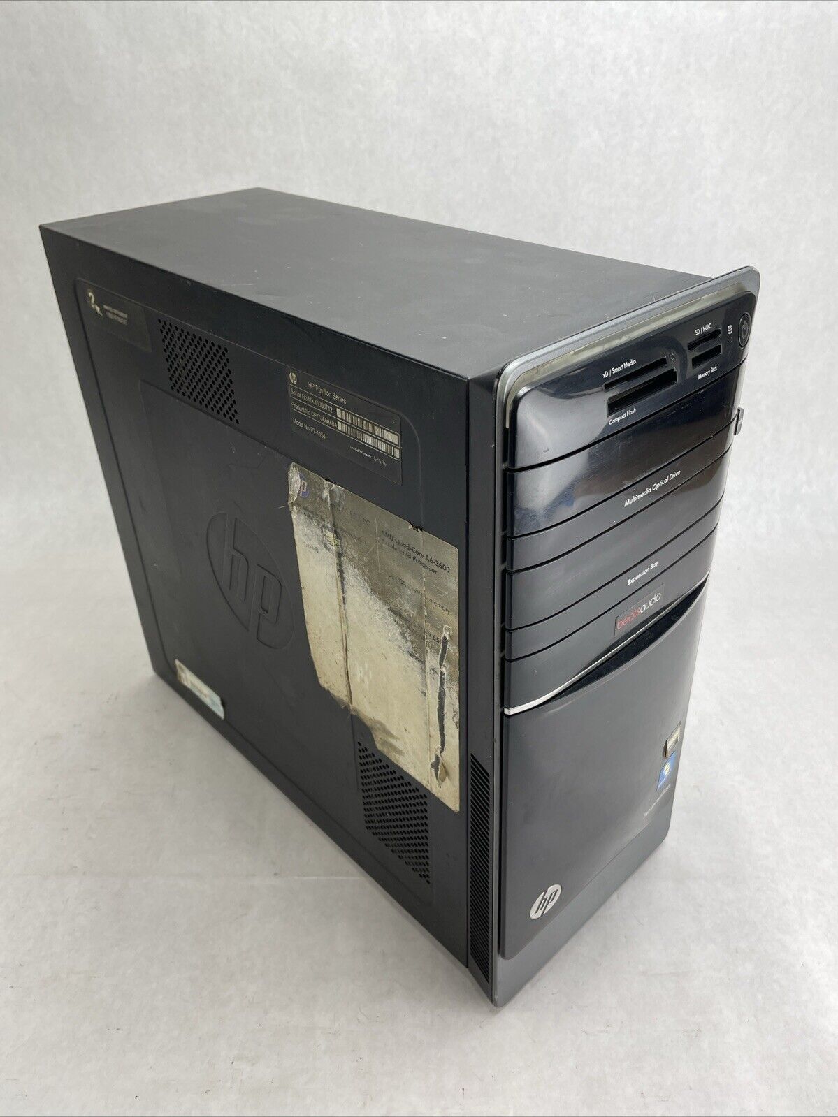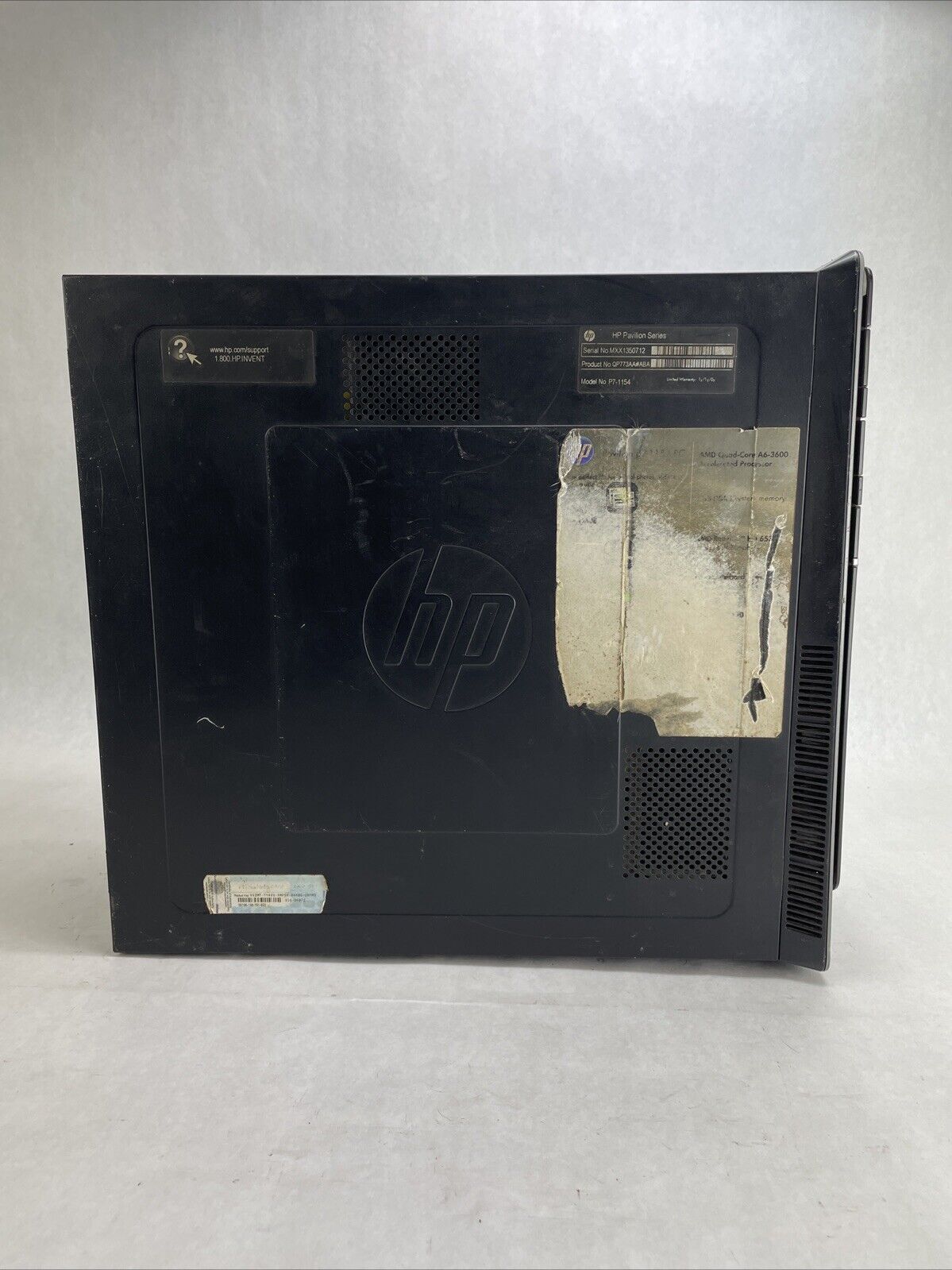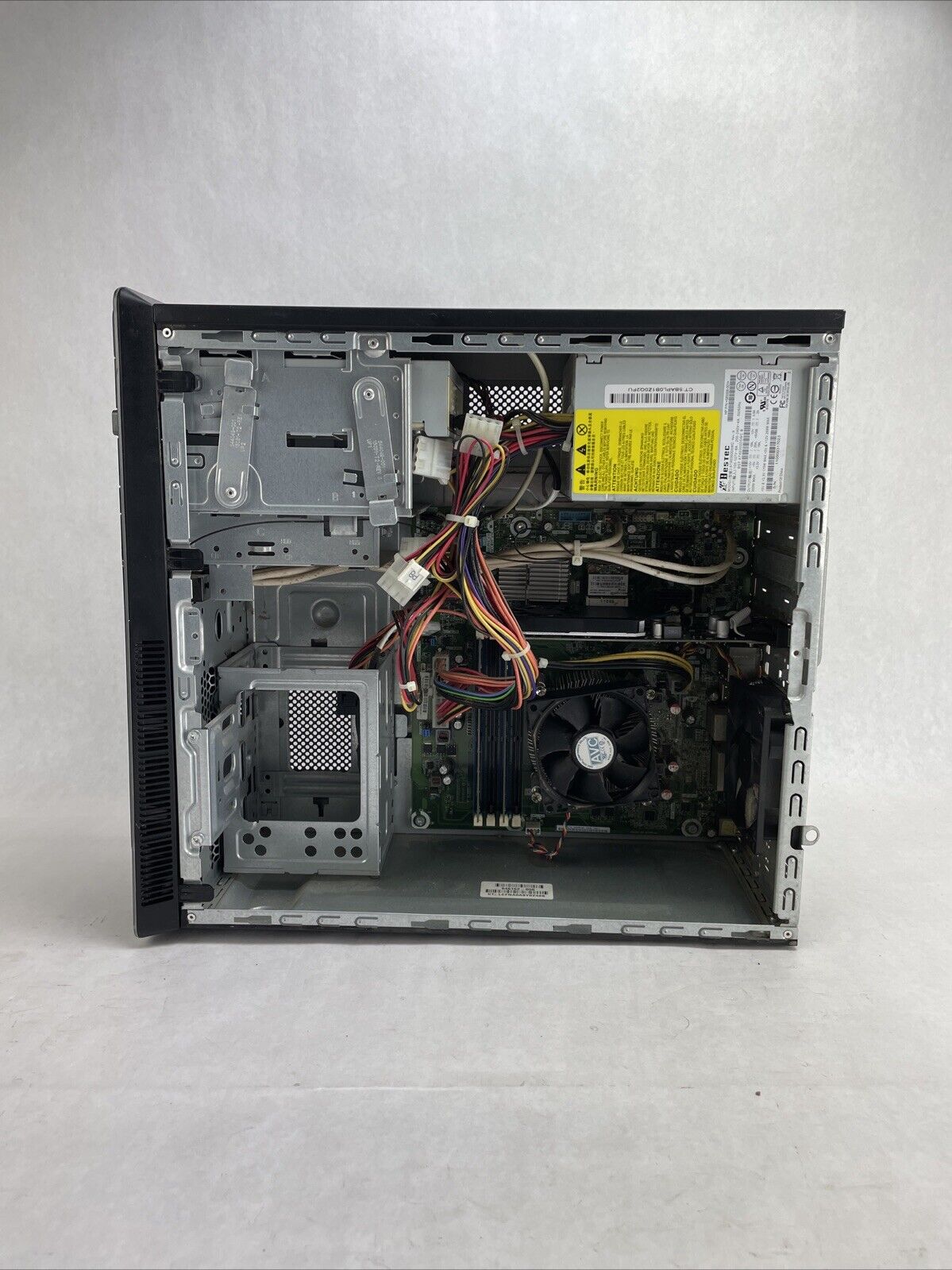 A power cord is included. CPU and RAM passed a stress test. Hard drive removed. The case may be missing rubber feet and have cosmetic damage from previous use. Buyer will need to install a hard drive and an operating system. There is a Windows 7 COA on the case. There is a caddy or screws to mount a hard drive. See photos for additional details.