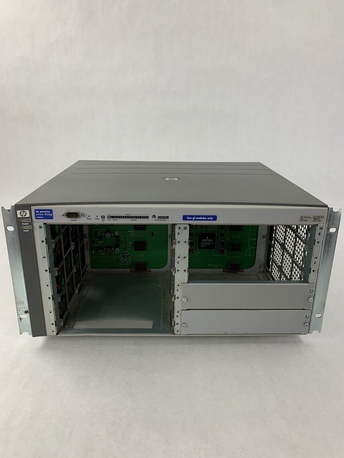 HP ProCurve J4865AABA External Ethernet Switch Chassis, unit in good clean condition coming from a working environment, Unit has been tested and powers on and is set to factory default. Unit comes with 30 day DOA.