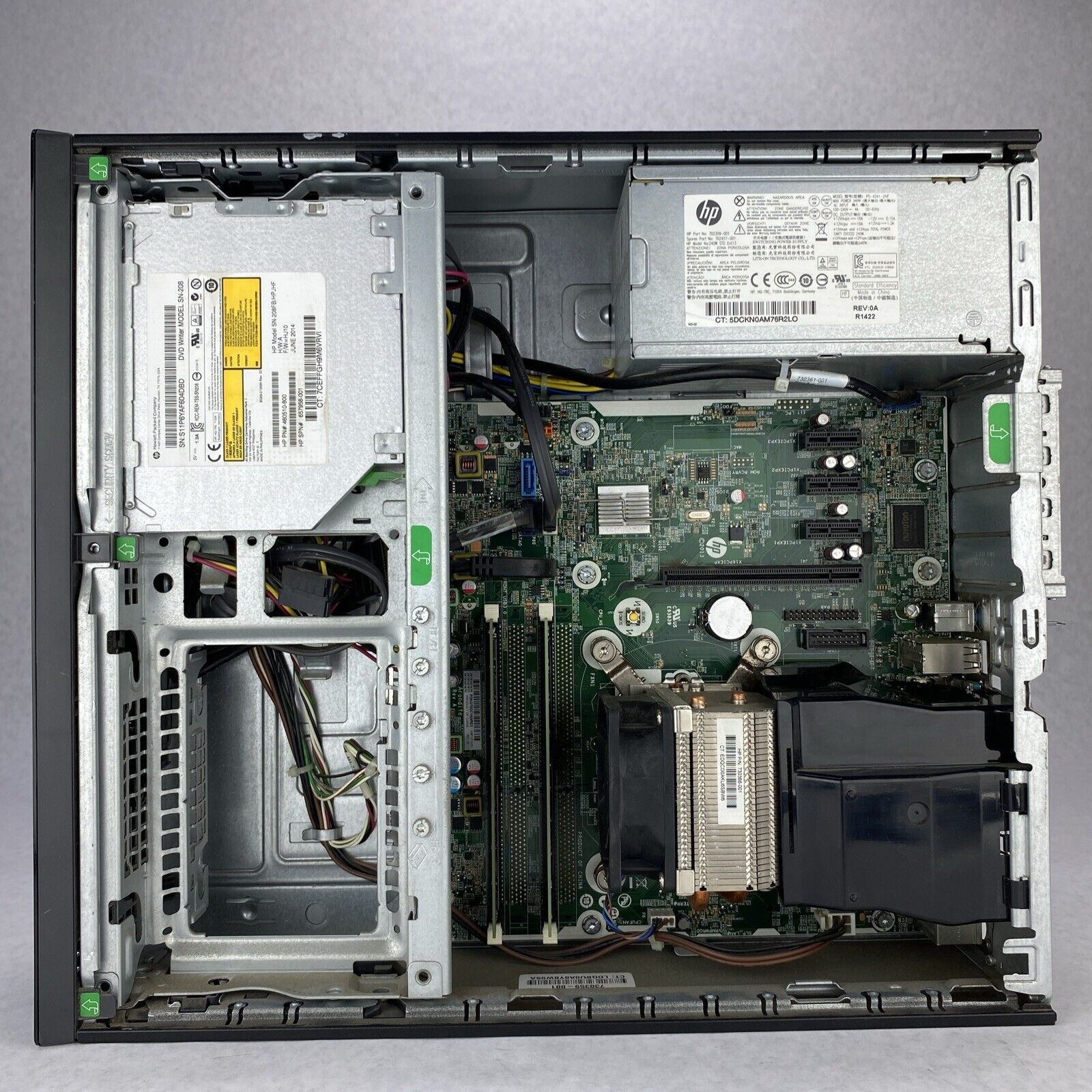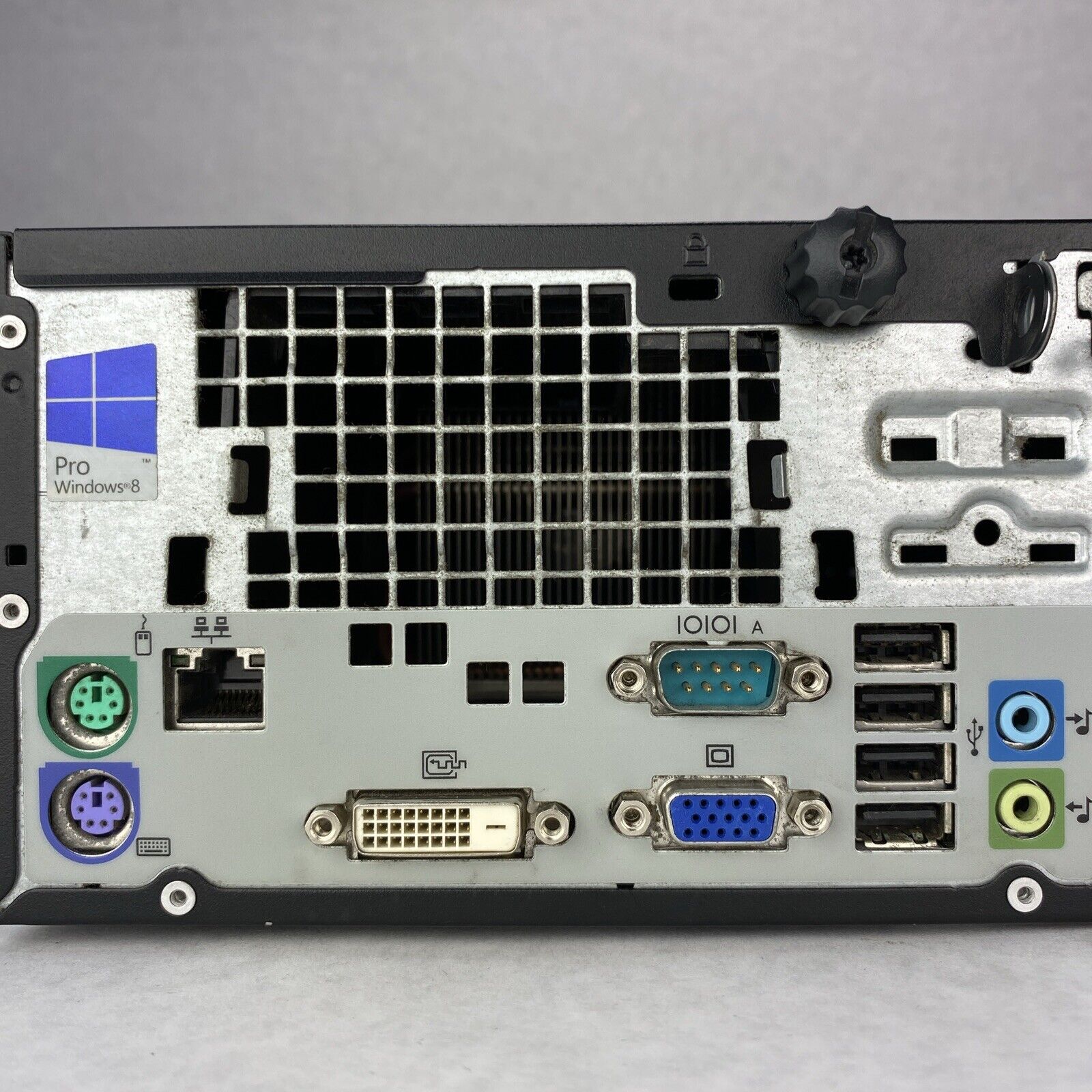 Tested and working. CPU and RAM passed a stress test. Hard drive removed. No operating system or software included. The case may be missing rubber feet and have scattered scuffs and scratches from previous use. NOTE: The cosmetic condition of this group of 9 PC's are all at least as good as the one shown. The one photographed was pretty thoroughly cleaned. The others will be lightly cleaned before shipping. Some of these will need extra cleaning. See photos for details. Has Windows 8 Pro key in Bios. Has DVD-CD/RW Optical Drive. Includes Power Cord.