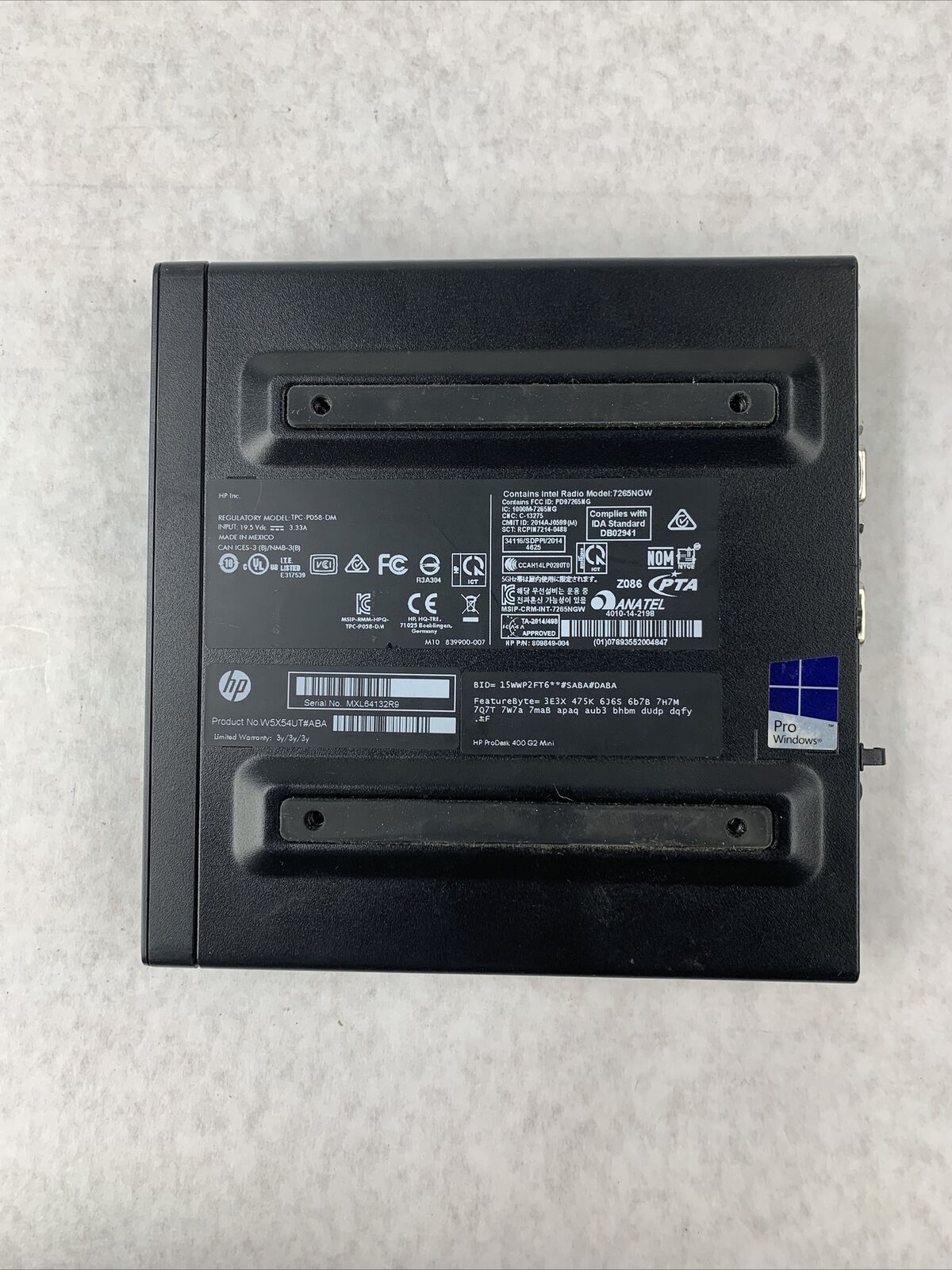 Power cord is NOT included. Tested and working. CPU and RAM passed a stress test. Hard drive removed. No operating system or software included. The case may be missing rubber feet and have scattered scuffs and scratches from previous use. Buyer will need to install a hard drive and an operating system. There is no COA on the case. There is no caddy or screws to mount a hard drive. See photos for additional details.