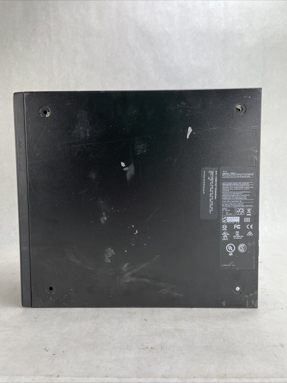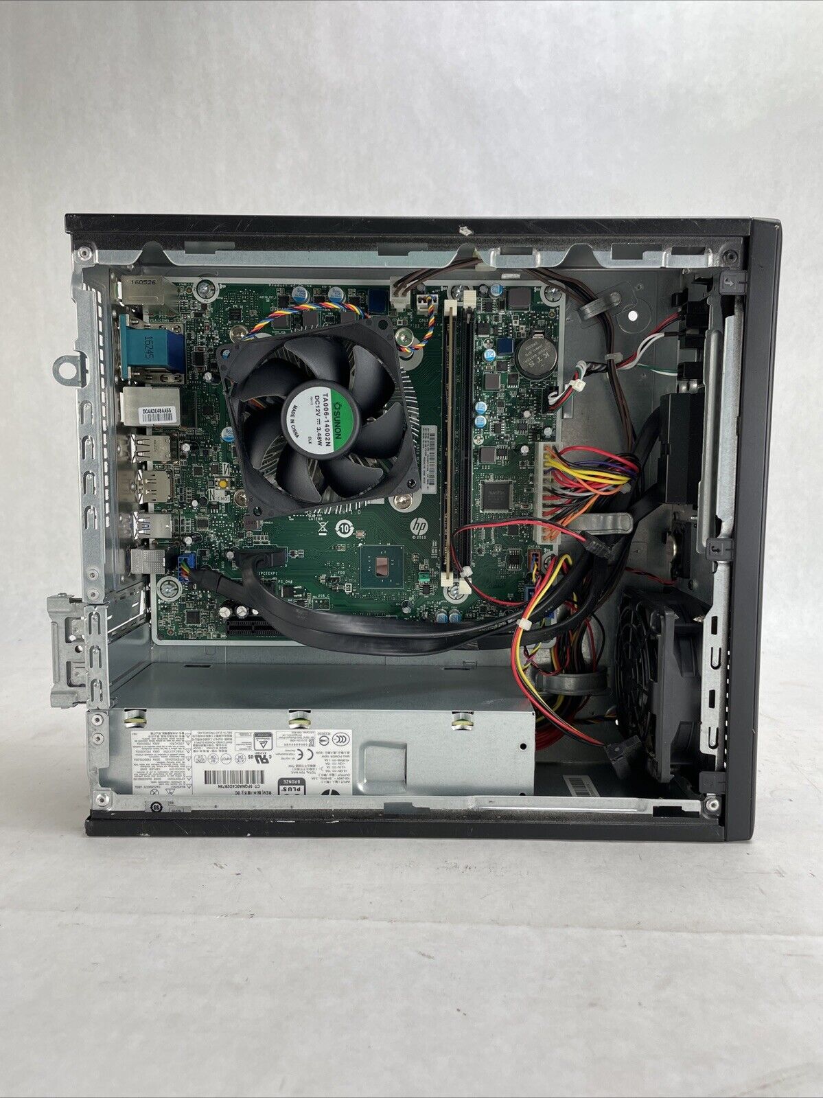 A power cord is included. CPU and RAM passed a stress test. Hard drive removed. The case may be missing rubber feet and have cosmetic damage from previous use. Buyer will need to install a hard drive and an operating system. There is No COA on the case. There is no caddy or screws to mount a hard drive. See photos for additional details.