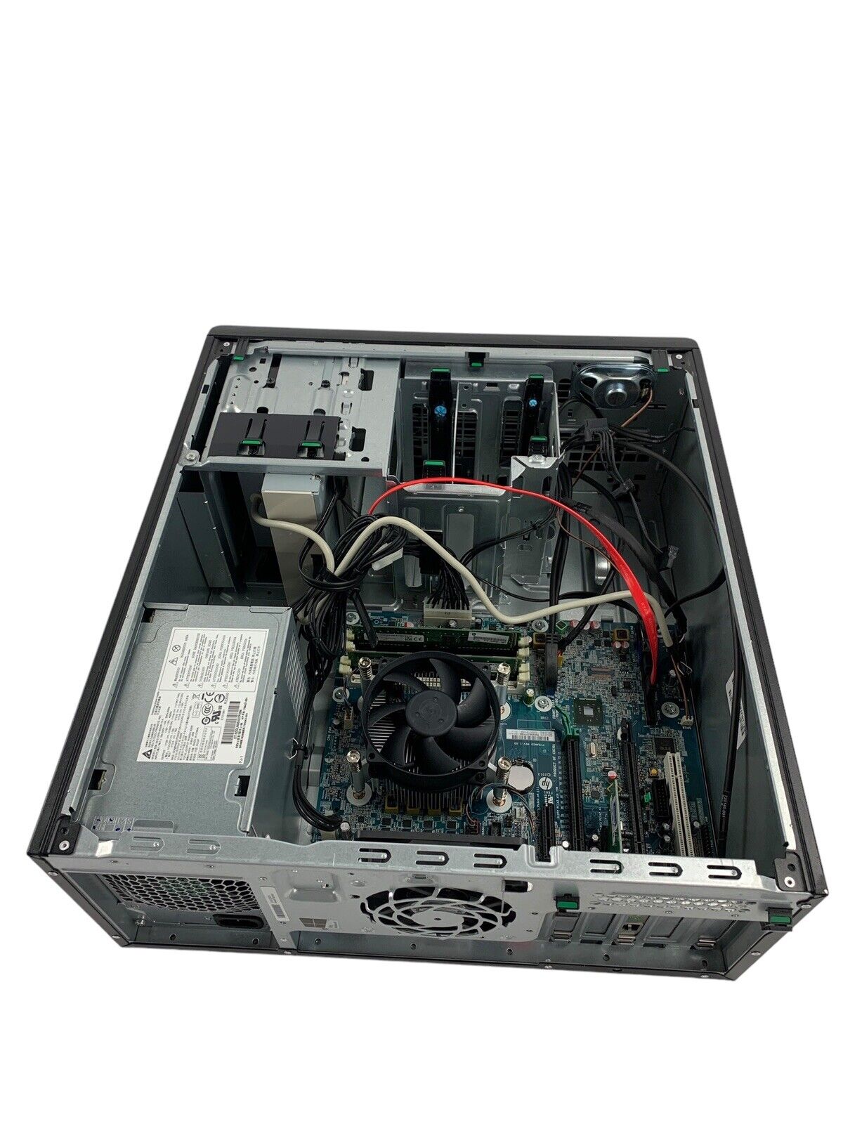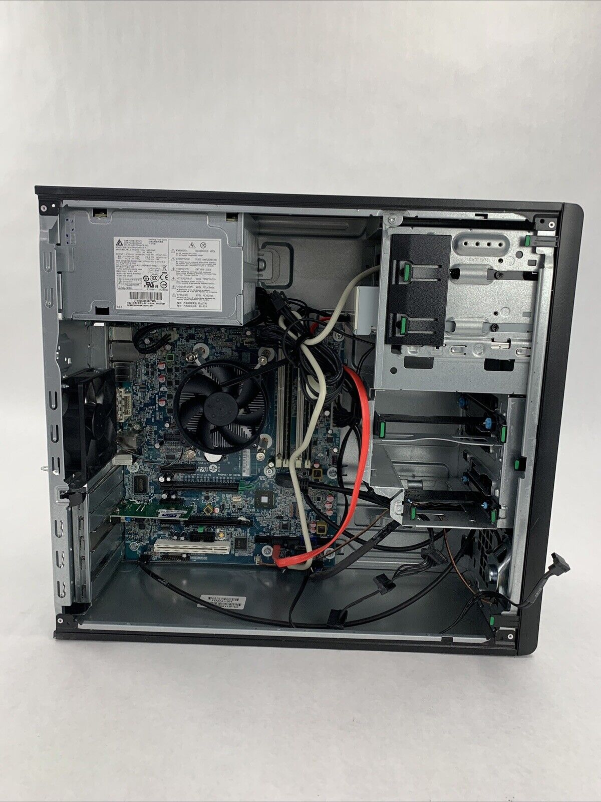 Power cord is included. Tested and working. CPU and RAM passed a stress test. Hard drive removed. No operating system or software included. The case may be missing rubber feet and have scattered scuffs and scratches from previous use. Buyer will need to install a hard drive and an operating system. There is no COA on the case. There is no caddy or screws to mount a hard drive. See photos for additional details.