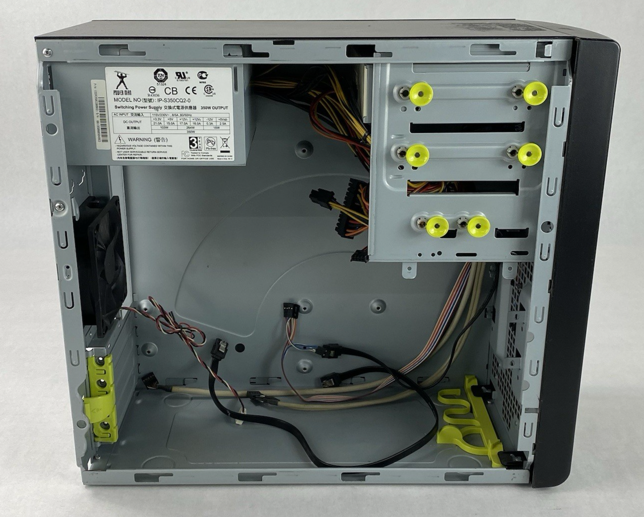 Does Not include A Motherboard, RAM, HDD Or other components NOT pictured. All pictured drives, fans and power Supply are tested and working. The Case may be missing rubber feet and have scratches, scuffs or dents from previous use.