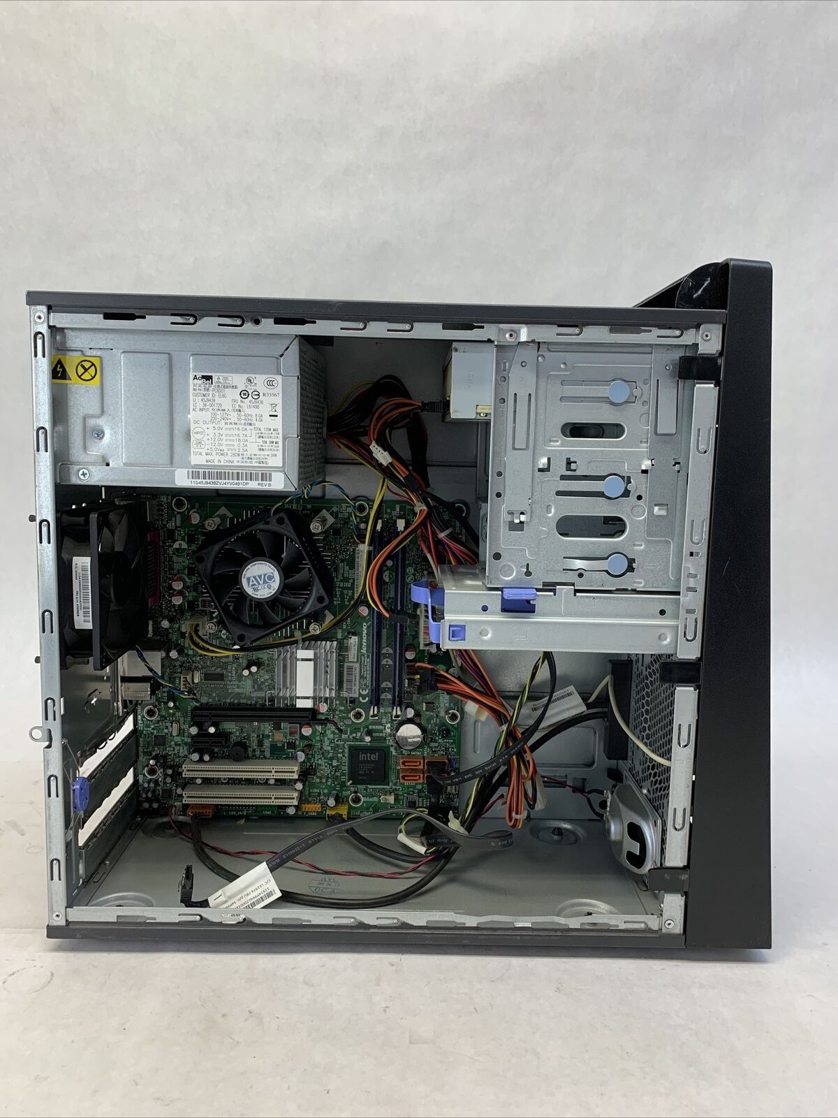 Power cord is included. Tested and working. CPU and RAM passed a stress test. Hard drive removed. No operating system or software included. The case may be missing rubber feet and have scattered scuffs and scratches from previous use. Buyer will need to install a hard drive and an operating system. There is Windows 7 COA on the case. There is no caddy or screws to mount a hard drive. See photos for additional details.
