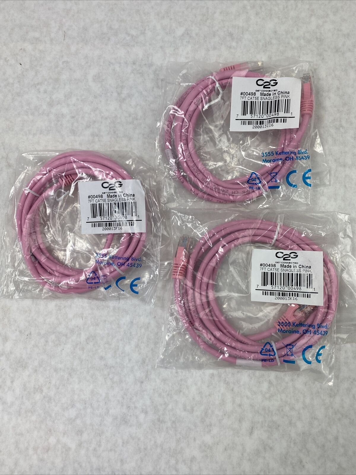 Lot( 3 ) 7ft Pink Cat5e C2G 00498 Snagless Unshielded UTP Ethernet Patch Cable