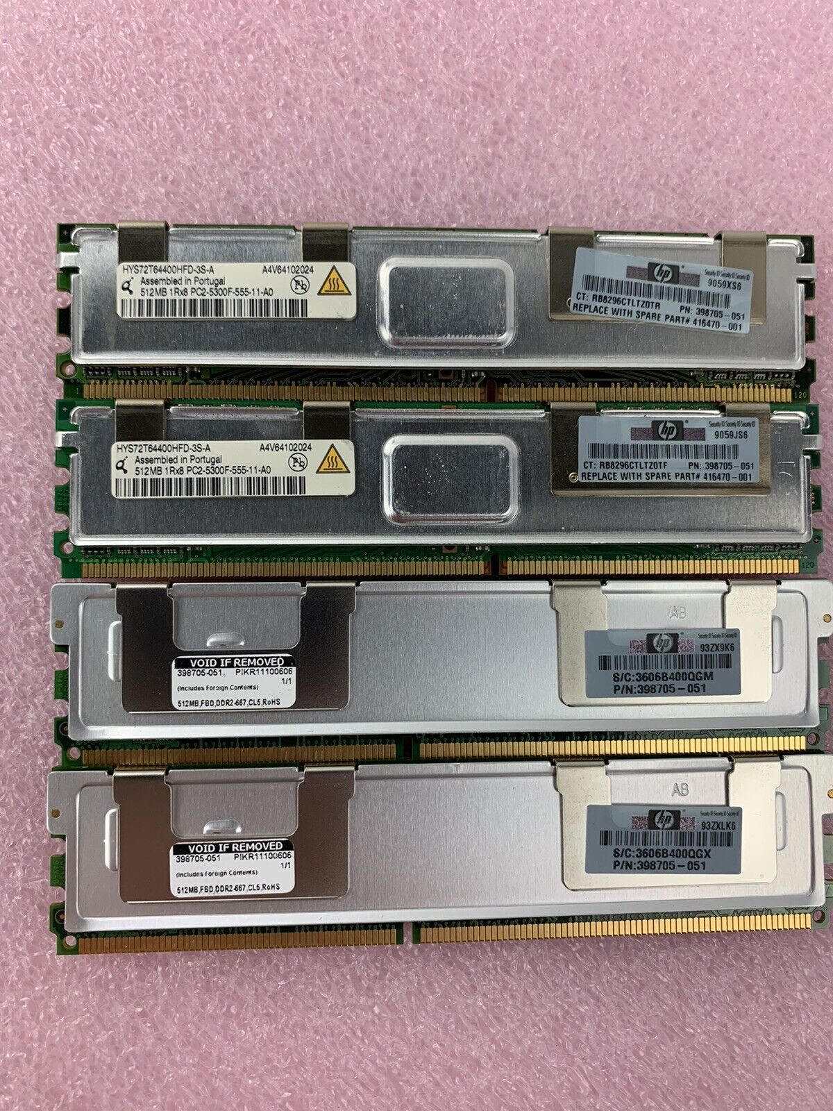 Lot of 4 512MB DDR2 PC2-5300F-555-11-A0 HP# 398705-051 Server Memory RAM