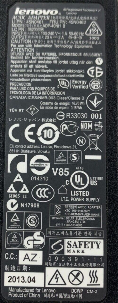 Lot of 5 Lenovo ADP-40NH B AC Power Adapter Charger