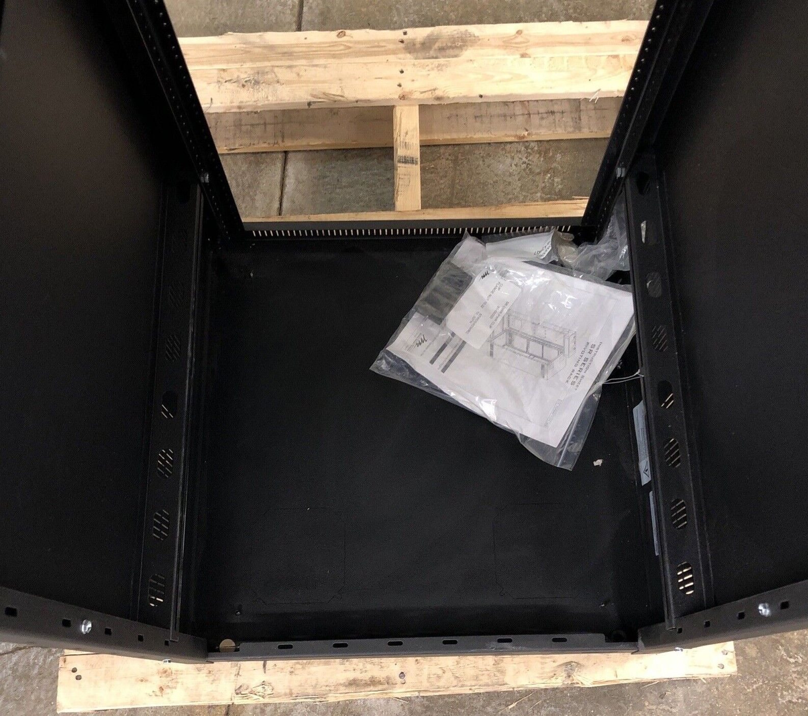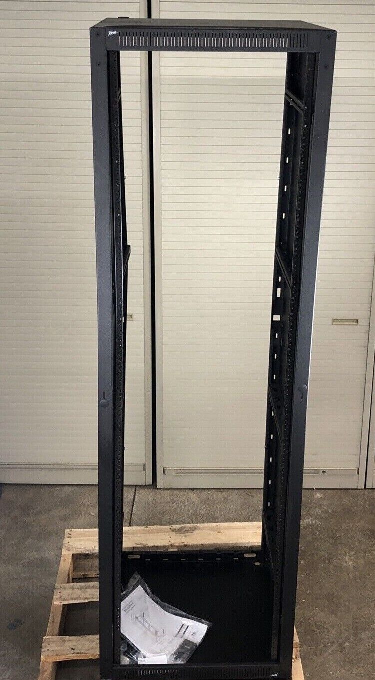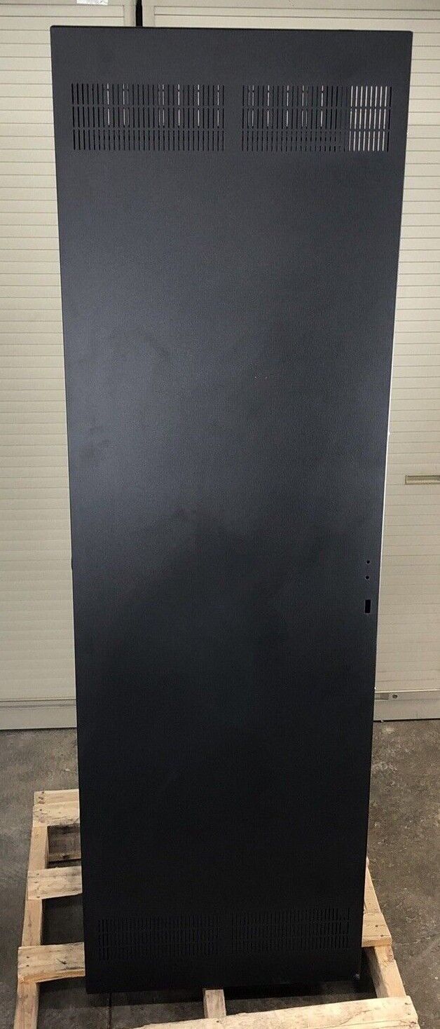 Minor dents on the side panel and bowing in the frame. No wall mount. Comes with the instruction manual.