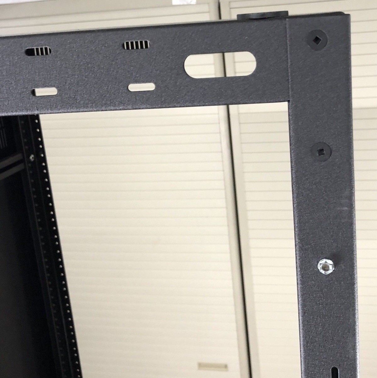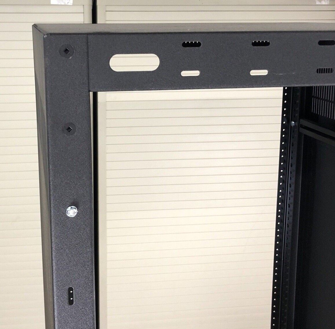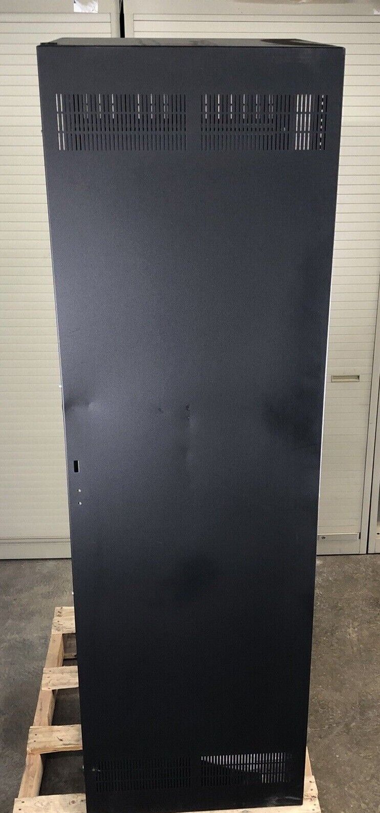 Minor dents on the side panel and bowing in the frame. No wall mount. Comes with the instruction manual.