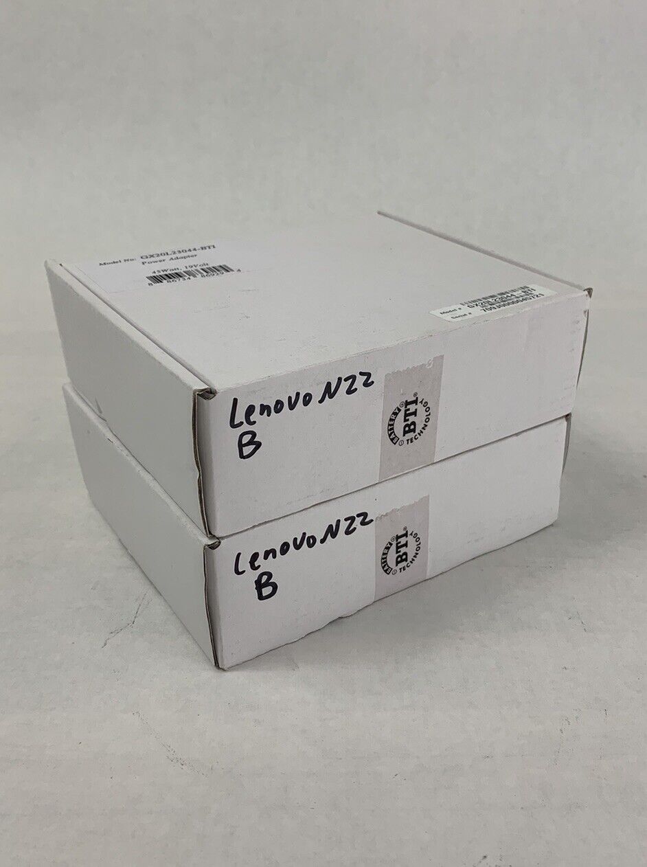 Comes in lots of 2. Comes with power cord. Items seem to be generic branded adapters however the non-Lenovo box claims that its Lenovo. Items are untested. Comes with a 30-day DOA warranty.