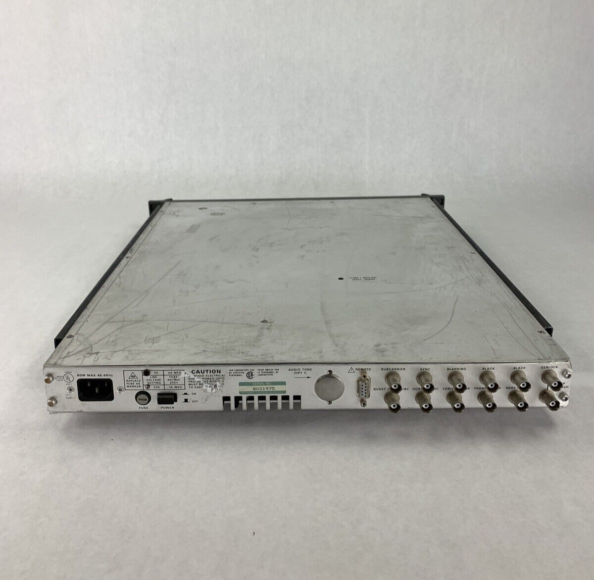 Unit is coming from a used environment with some wear and tear from use overtime. Unit is coming tested with issues, unit powers on, sends signal to monitor but set identification LED is out and ID button doesn't work. Comes as photographed.